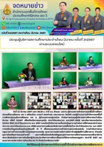 ประชุมผู้บริหารสถานศึกษาประจำเดือน มีนาคม ครั้งที่ 3/2567 ผ่านระบบออนไลน์