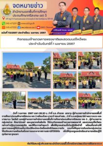 กิจกรรมเข้าแถวเคารพธงชาติและสวดมนต์ไหว้พระ ประจำวันจันทร์ที่ 29 มกราคม 2567