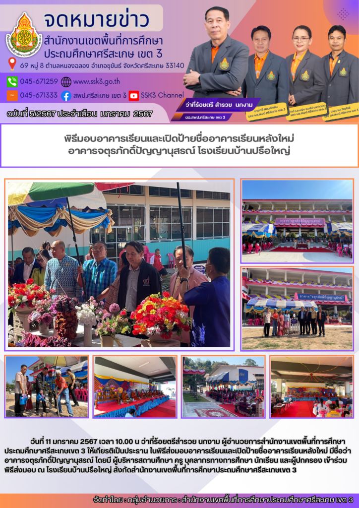 พิธีส่งมอบอาคารเรียนและเปิดป้ายชื่ออาคารเรียนหลังใหม่ มีชื่อว่า อาคารจตุรภักดิ์ปัญญานุสรณ์ 15/03/2024 Last updated : 15/03/2024 admin