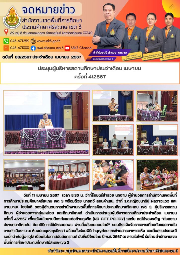ประชุมผู้บริหารสถานศึกษาประจำเดือน เมษายน ครั้งที่ 4/2567