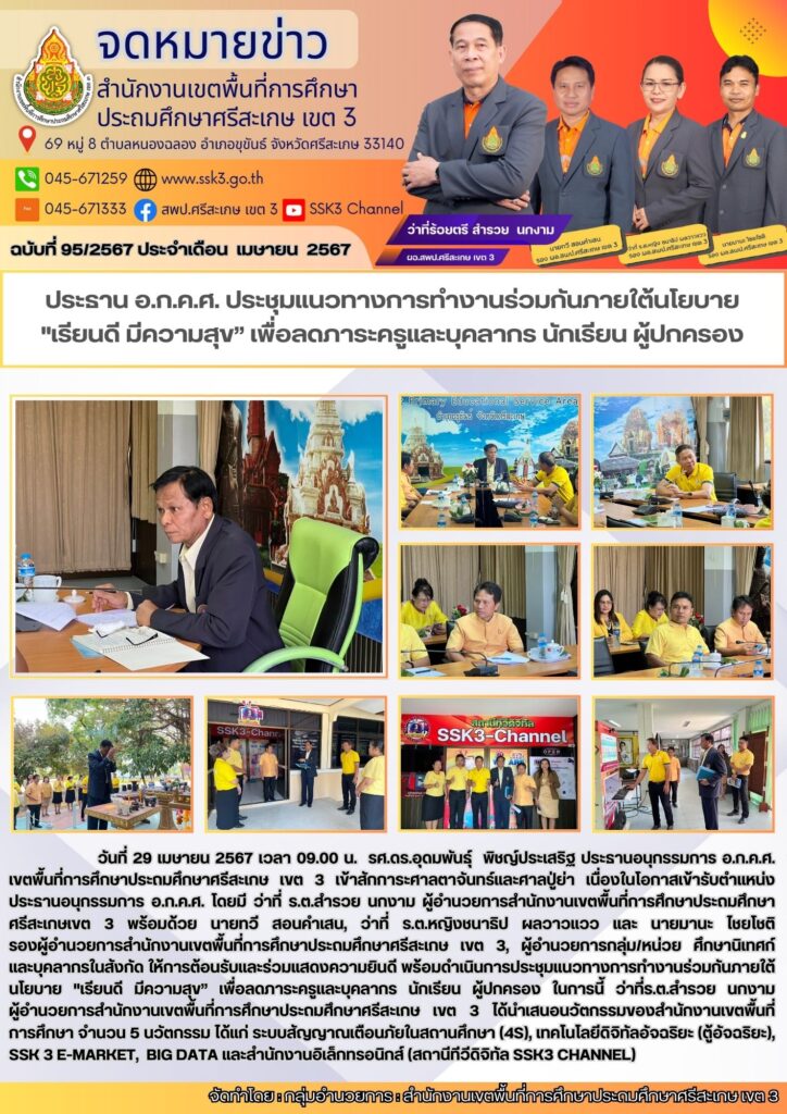 ประชุมแนวทางการทำงานร่วมกันภายใต้นโยบาย “เรียนดี มีความสุข” เพื่อลดภาระครูและบุคลากร นักเรียน ผู้ปกครอง 25/06/2024 Last updated : 25/06/2024 admin