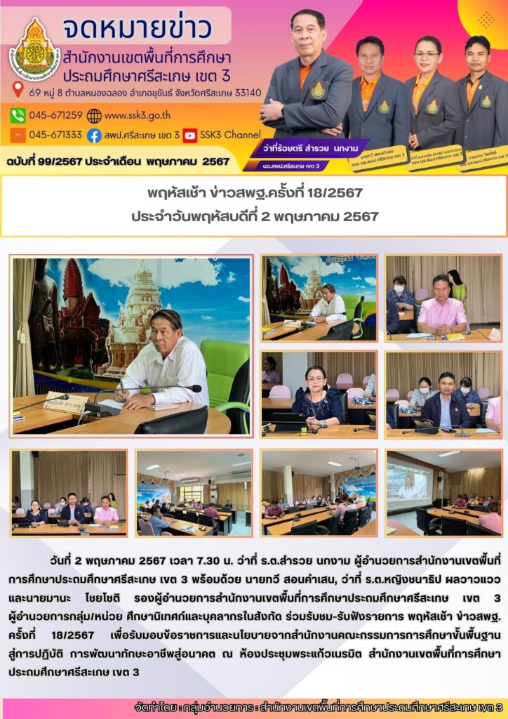 พฤหัสเช้า ข่าวสพฐ.ครั้งที่ 18/2567 ประจำวันพฤหัสบดีที่ 2 พฤษภาคม 2567 25/06/2024 Last updated : 25/06/2024 admin
