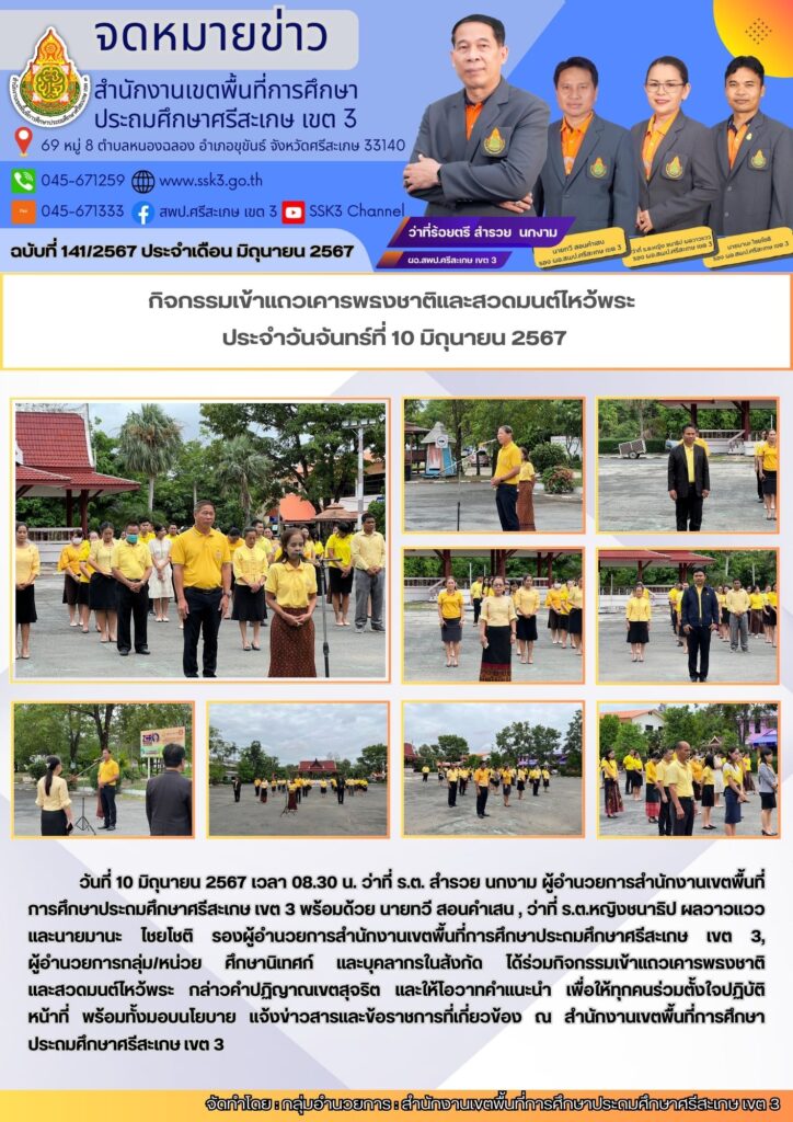 กิจกรรมเข้าแถวเคารพธงชาติและสวดมนต์ไหว้พระ ประจำวันจันทร์ที่ 10 มิถุนายน 2567 25/06/2024 Last updated : 25/06/2024 admin