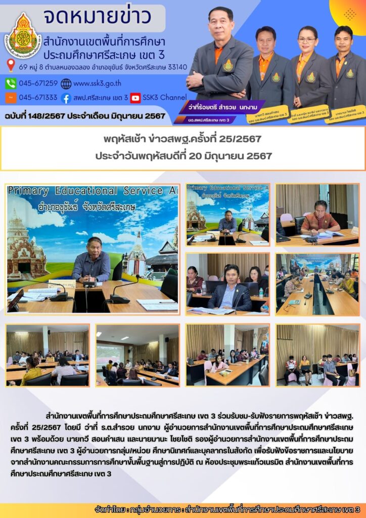พฤหัสเช้า ข่าวสพฐ.ครั้งที่ 25/2567 ประจำวันพฤหัสบดีที่ 20 มิถุนายน 2567 25/06/2024 Last updated : 25/06/2024 admin