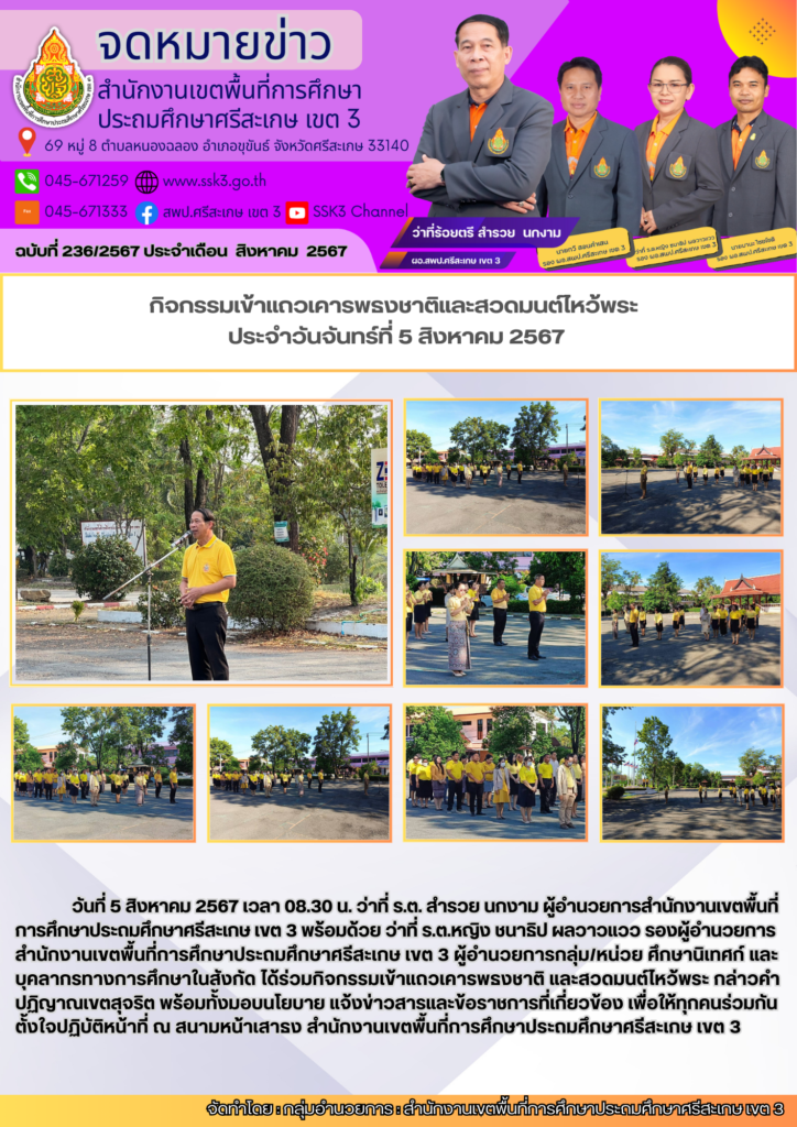 กิจกรรมเข้าแถวเคารพธงชาติและสวดมนต์ไหว้พระ ประจำวันจันทร์ที่ 5 สิงหาคม 2567 05/08/2024 Last updated : 05/08/2024 admin